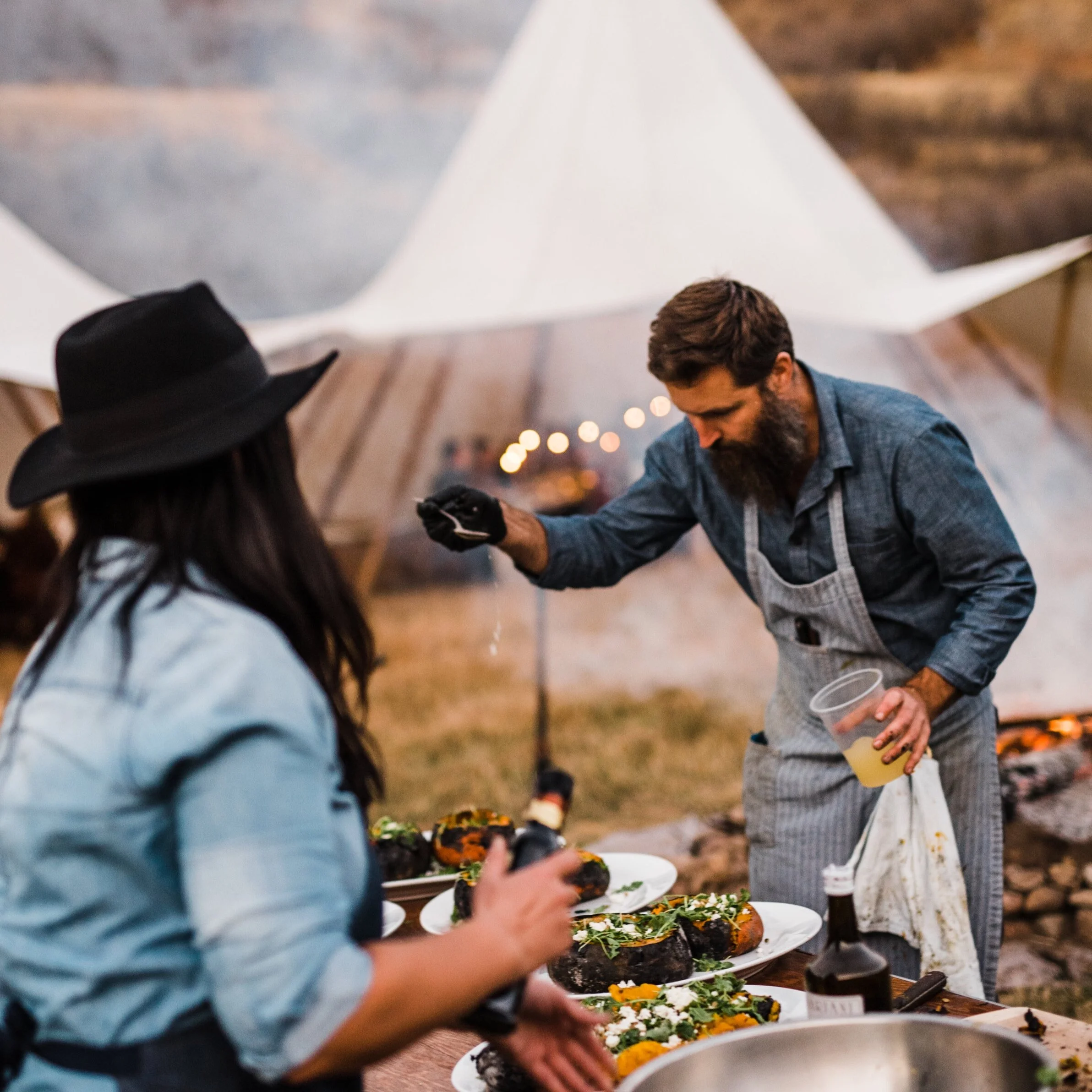 Whether on a mountaintop, in a meadow, or by the sea, The Tournant Experience is centered around open-fire cooking and and creating rustic, beautiful food—made fresh onsite. Our style is to create an interactive outdoor kitchen where we prepare food in front of guests to encourage engagement, curiosity and connection.